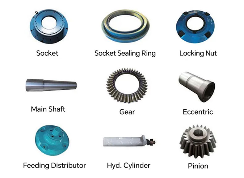 Our portfolio includes over 3,500 cone crusher spare parts—from bronze bushings, sockets, and feed plates to head nuts, gears, pinions, filler pieces, and torch rings. We also manufacture complete major assemblies such as head & shaft units, countershafts, and top and bottom shells for all leading industry brands.