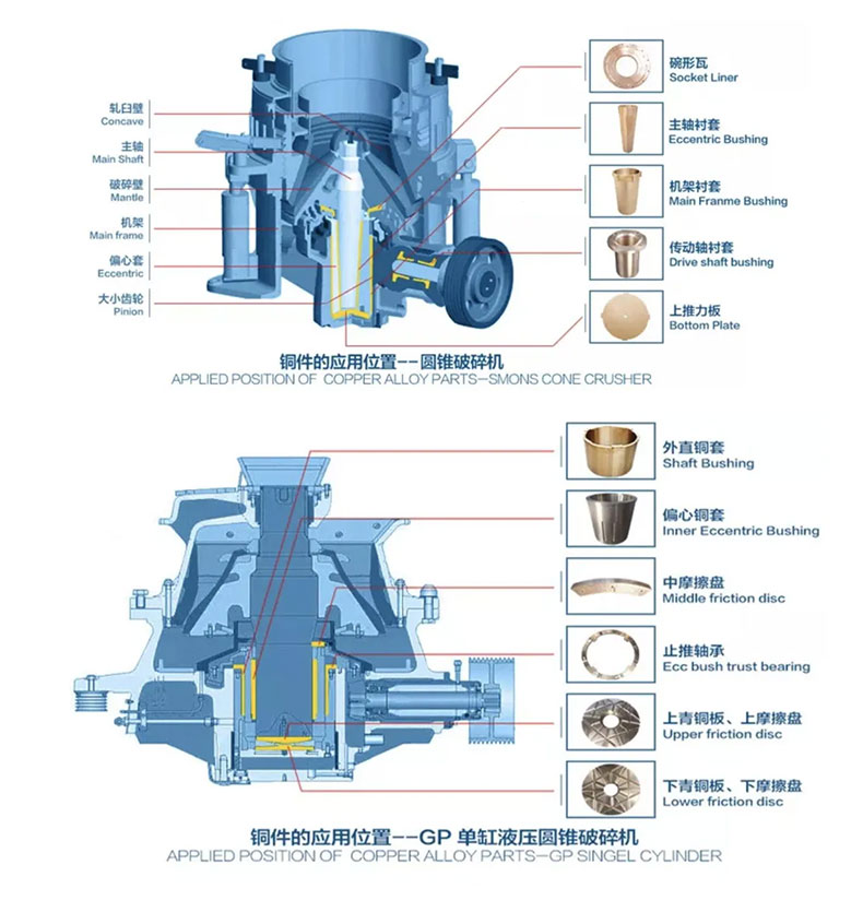 At FGMachinery, we produce all cone crusher bronze parts exclusively from fresh, high-grade copper alloy, ensuring superior quality and extended service life.