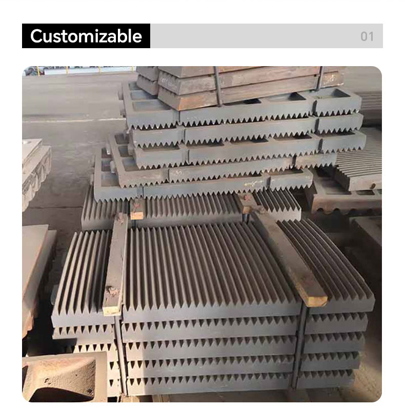 Jaw plates are the primary wear parts in a jaw crusher, responsible for breaking down material. They are made of two metal plates—one stationary and one movable—that press together to crush rock, aggregate, or other materials. The shape, material, and design of jaw plates can significantly affect crushing performance.